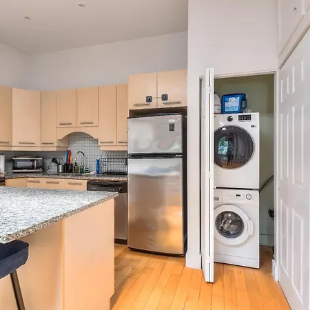 Offering an air conditioner, Loft The White Pearl Plateau-Mont-Royal 3 Beds Apartment includes a seating area equipped with a sofa set and a work desk. Within the in-room media amenities, there is a TV set. Beds fitted with hypoallergenic down pillows are at guests' disposal. All bathrooms are supplied with a walk-in shower and a separate toilet. A hairdryer and complimentary toiletries can also be found.